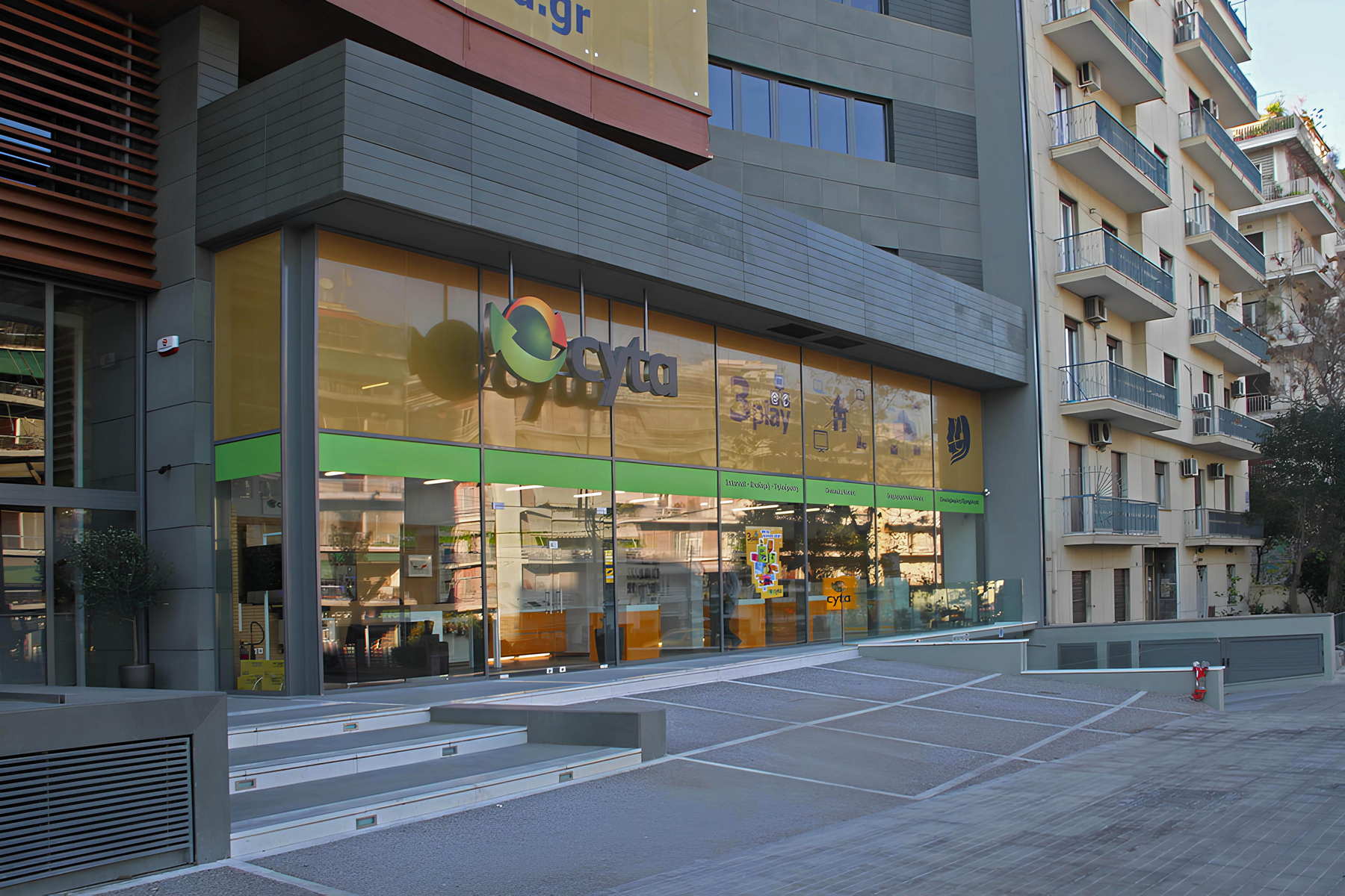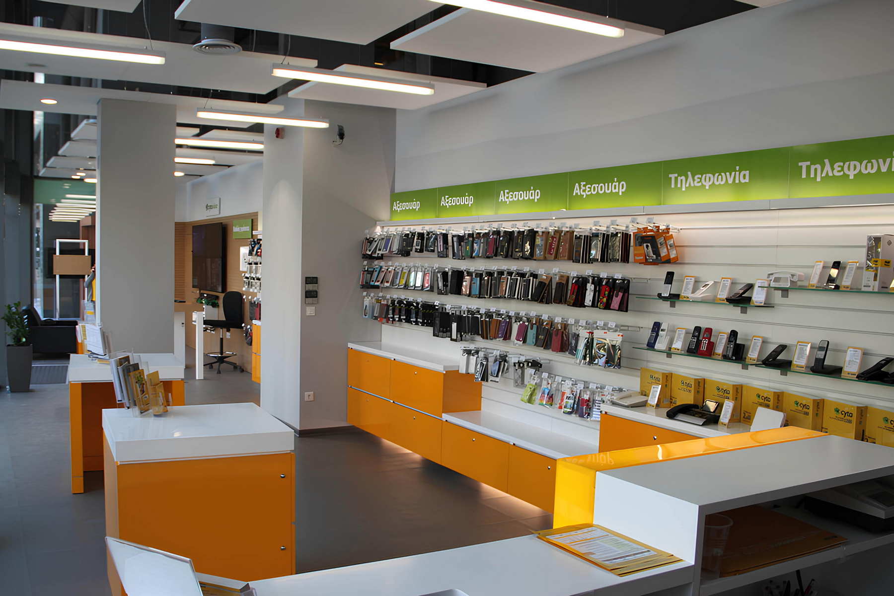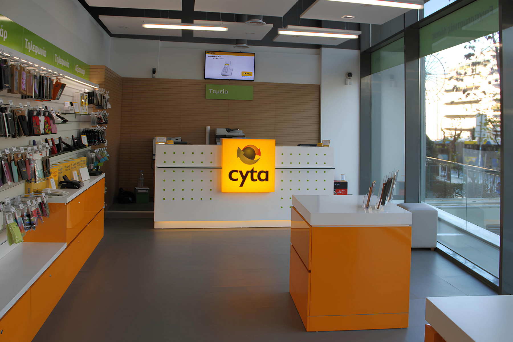 Πιλοτικό κατάστημα CYTA, Λεωφόρος Αλεξάνδρας, Αθήνα. Στο πλαίσιο της νέας εταιρικής οπτικής εικόνας, ανακαίνιση των καταστημάτων κινητής τηλεφωνίας CYTA.  Δίκτυο 30 καταστημάτων.